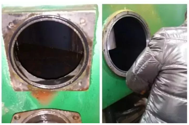 拆開主油箱人孔蓋,檢查油箱內油泥和金屬磨粒情況,發現油箱底層、濾網和吸油頭上結有大量油泥,如下圖。