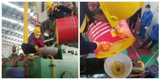 清洗好油箱、管線和濾網,安裝好人孔蓋和主泵管線后,開始加注新油,利用天車吊裝加油方式進行油品加注,加注過程中,對桶面、漏斗進行了嚴格的潔凈控制,確保加油過程無污染。